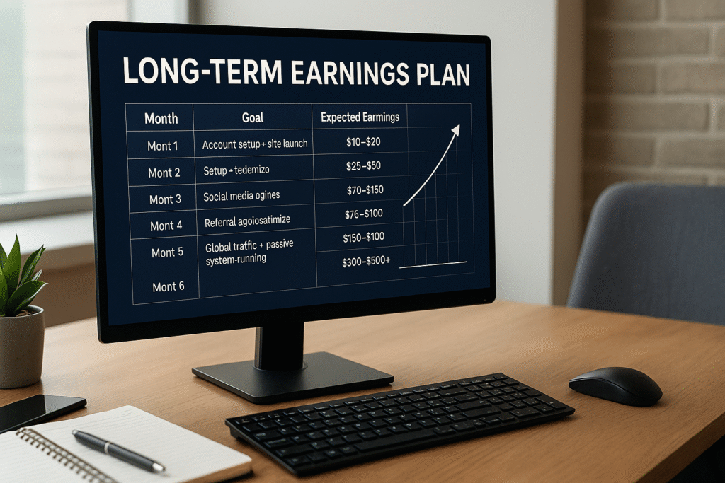💡 Hedef: 6 ay içinde 3 gelir kaynağını (Reklam + Smartlink + Referral) aynı anda çalışır hale getirmek.